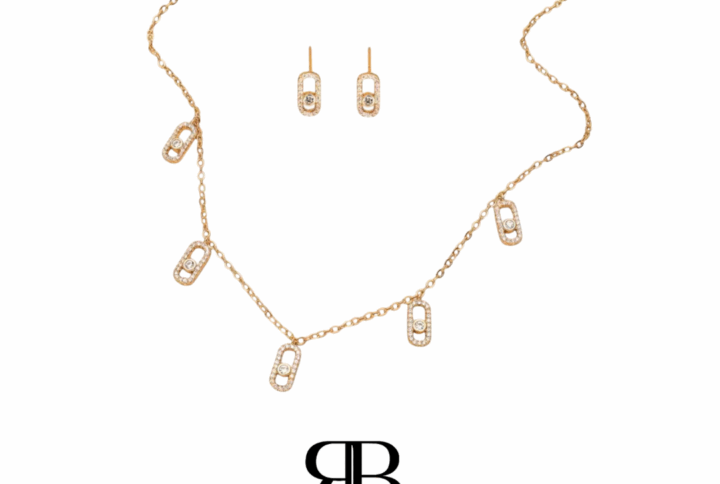 Parure (collier, boucles d’oreilles) en acier inoxydable.